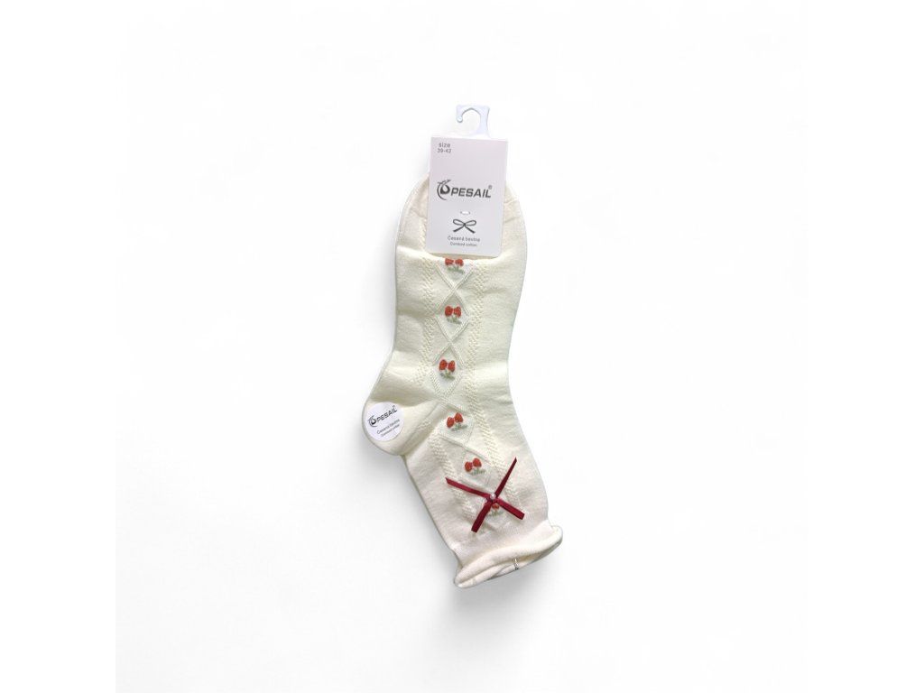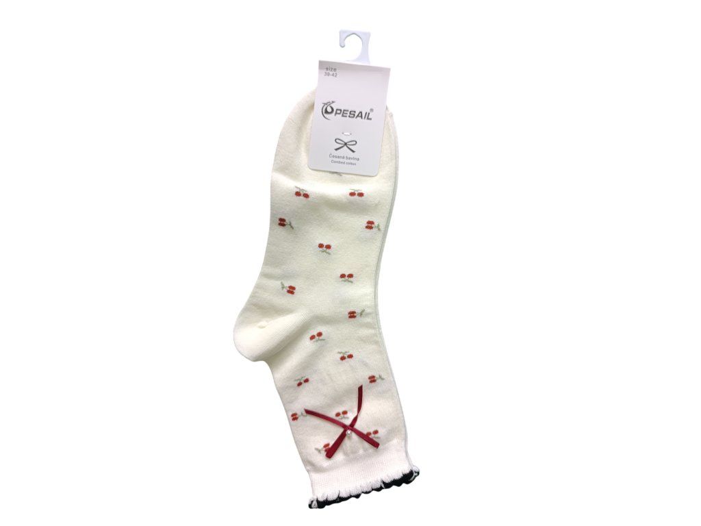 3 PACK dámské letní ponožky Cherry z 100% bavlny. Lehké, prodyšné a pohodlné ponožky s roztomilým motivem třešní, ideální na každodenní nošení v létě.