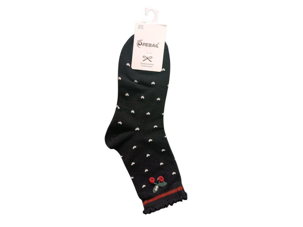 Dámské ponožky Cherry zajišťuje maximální pohodlí, měkkost a výbornou prodyšnost. Díky lehkému materiálu jsou ideální do teplého počasí, dobře odvádějí vlhkost a udržují nohy svěží po celý den. Elastický lem se přizpůsobí noze bez nepříjemného škrcení a ponožky dobře drží tvar. Veselý motiv třešní dodá outfitu hravý letní vzhled.